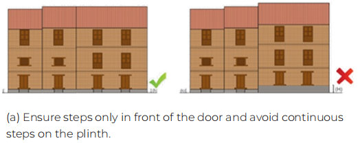 The following simple design guidelines on façade, door and window opening, cornices and plinth design including roof detailing are proposed (Table 4).