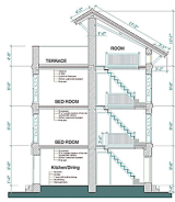 Before the earthquake, few houses in the north façade of the bahal had been renovated with the addition of floors and replacing the earlier windows with large glass panels. Such a building has a ratio of opening area to façade area of 0.310, slightly higher than the case of traditional houses (Table 2.1b). As the earlier sloped roof has been replaced by a flat concrete slab, the roof height is not seen in elevation. Even roofs of some public buildings were changed into flat ones.