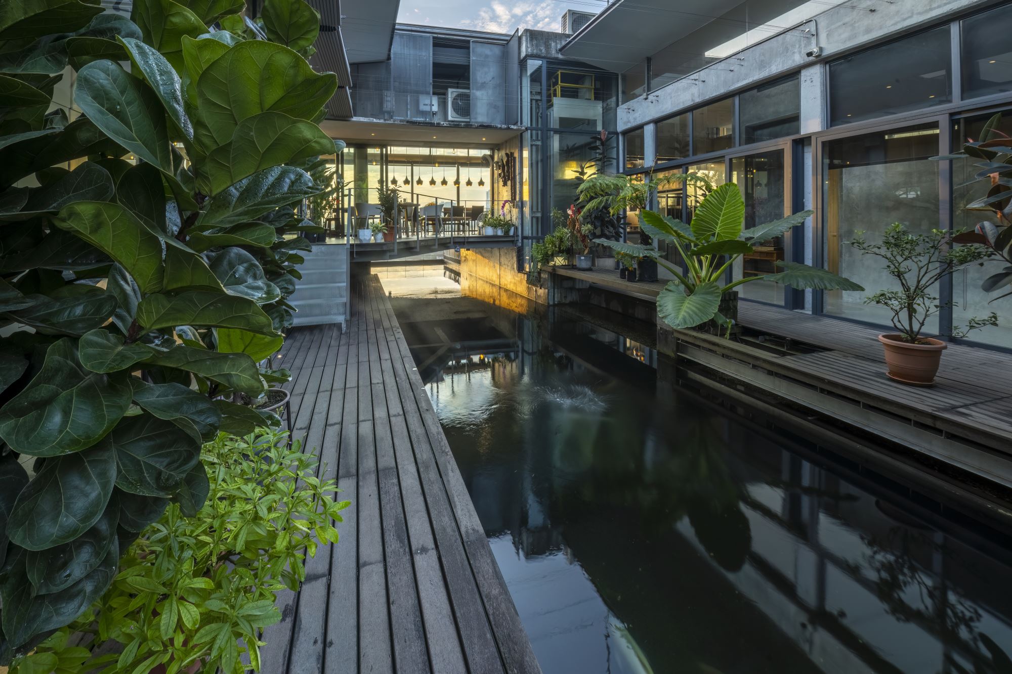 The house adapts to climate and ritual with ingenuity. A 5-meter-square steel wall folds open to merge gallery and landscape, while retractable canopies and sliding glass doors invite breezes and light. On the rooftop, a fsh pond doubles as a plunge pool, its water recycled to nourish a hidden garden below—a self-sustaining loop that transforms residual space into a productive urban farm. This garden, a casual retreat for family gatherings, channels the communal spirit of traditional kampung villages, reimagined for urban life. Blurring indoors and out, the design embraces Malaysia’s humid climate, using passive strategies to cool and shade without sacrifcing openness.