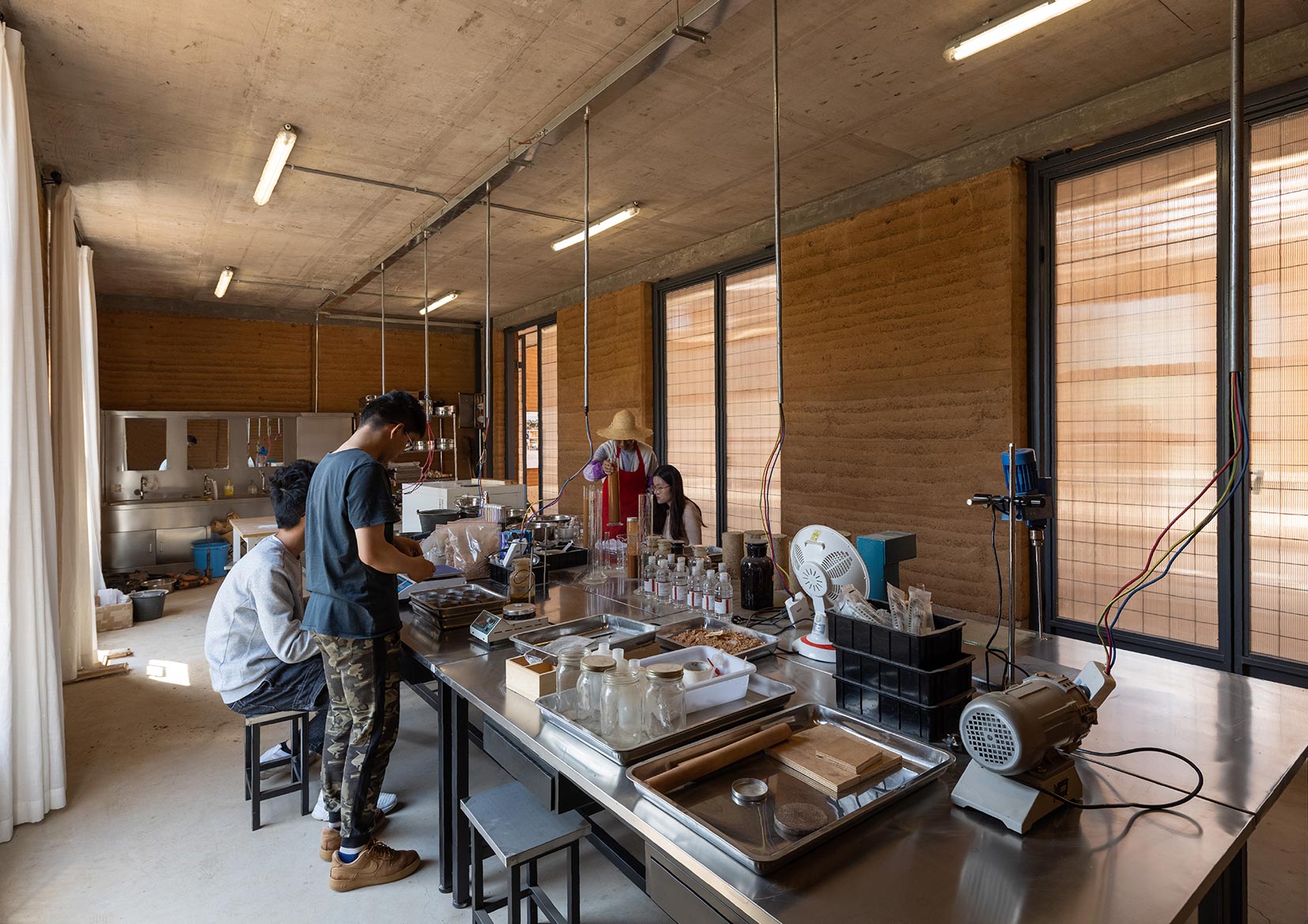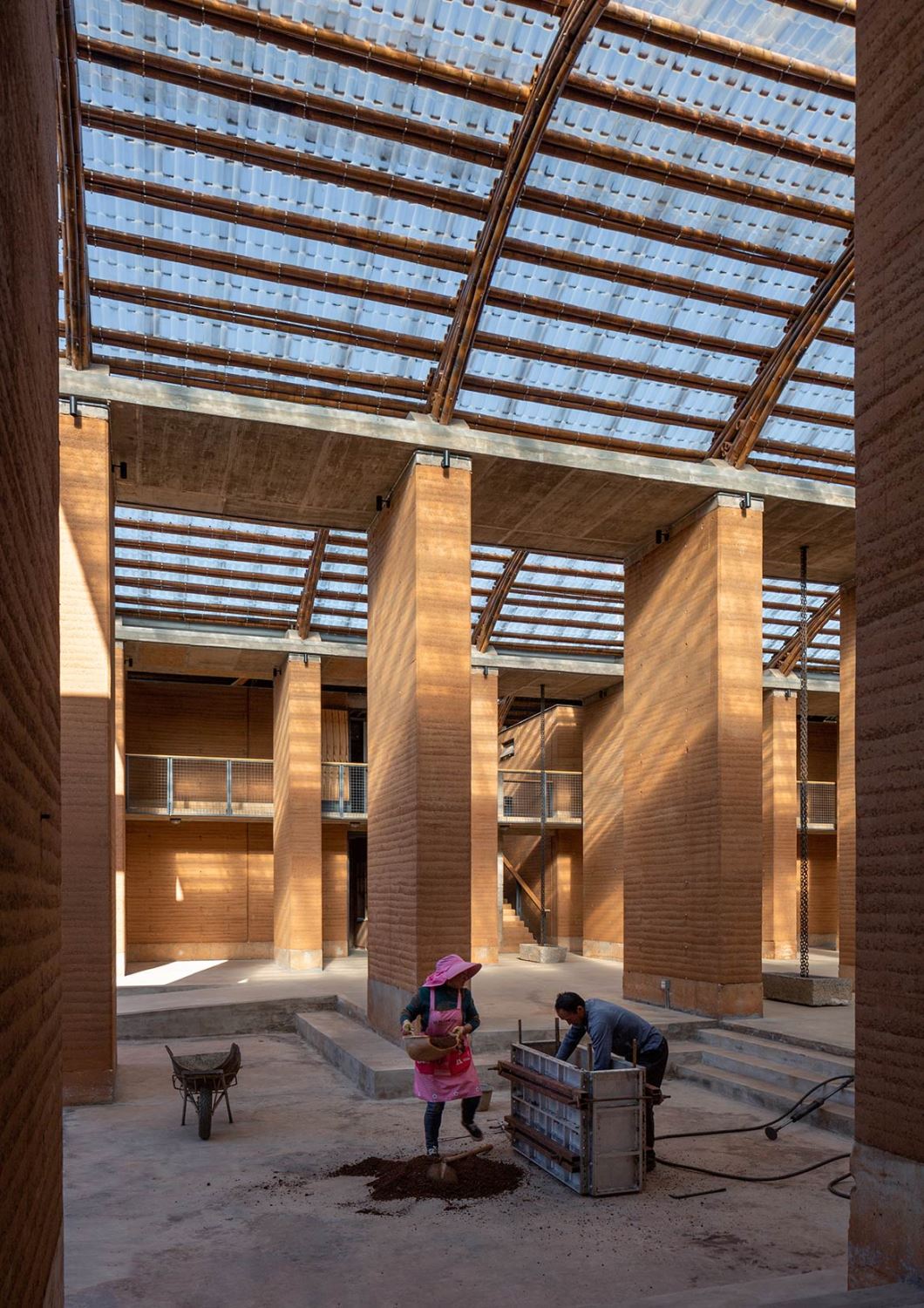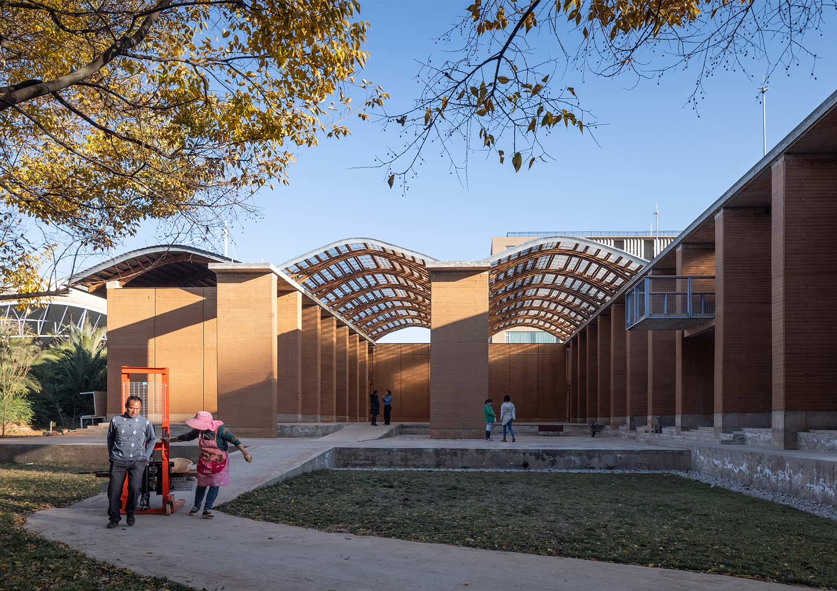 Terra Centre is the result of a collaboration between the architects (team One University One Village (1U1V) ) and Kunming University of Science and Technology (KUST), Yunnan Province, China, and provides an opportunity to improve construction technology and seismic performance of earth constructions in southwest rural China. Located on the university’s campus, the center—which is funded by Chan Cheung Mun Chung Charitable Fund—provides a location to carry out the long-term training of artisans, creates a space for conducting experiments, research, and practical study, and enables the reveal and display of technologies and achievements of new seismic earth constructions within a conducive environment, to further research and studies.