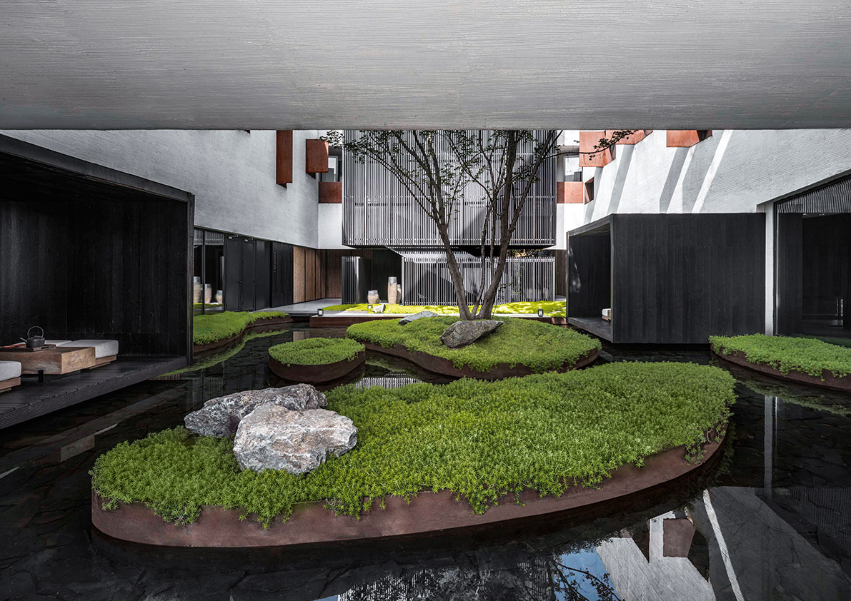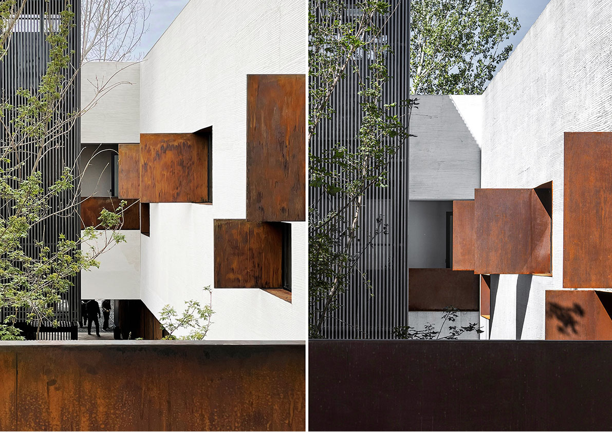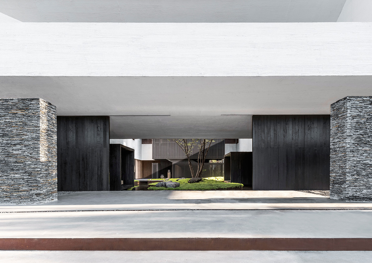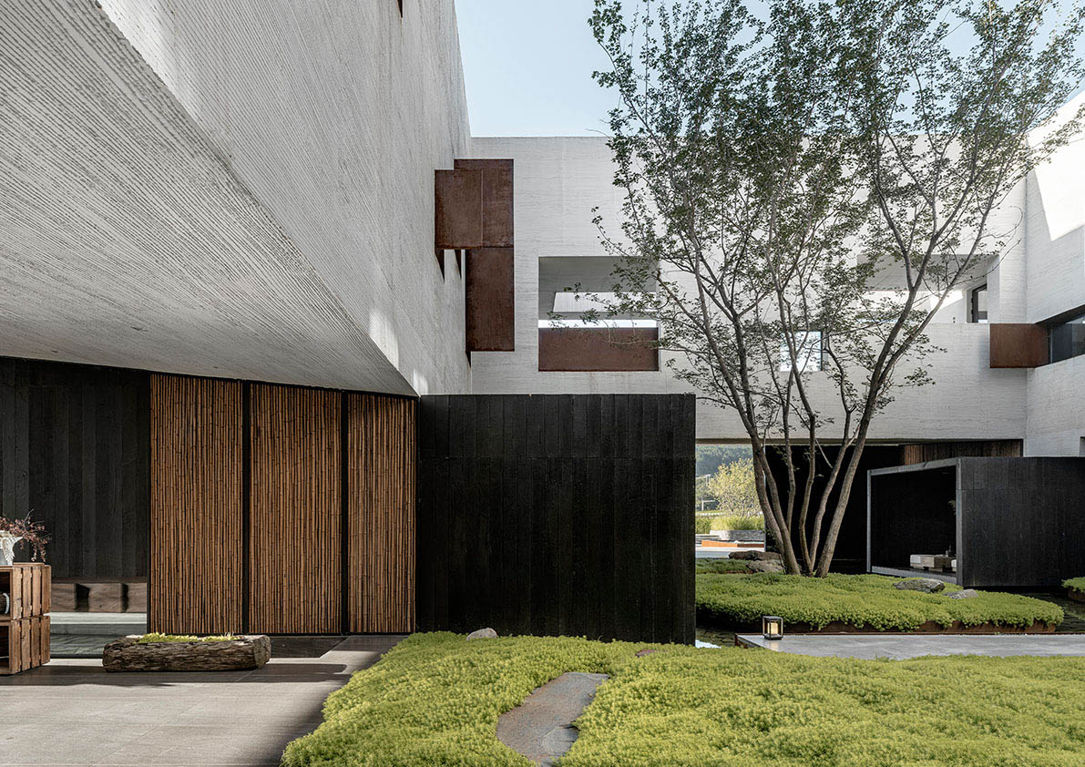 The architect breaks known conventional modes of conveying the information, such as simply through objects and pictures and instead, tells the story through cultural bonds and the building’s interaction with the land. Locally sourced materials, such as charred timber, mao zhu (native Chinese bamboo), and schist stone spotlight the local culture of the area and create an environment with rich perspectives and immersive, multisensory experiences, while apertures in different dimensions combine to connect people to the various scenes in the space that are displayed in disordered fragments.