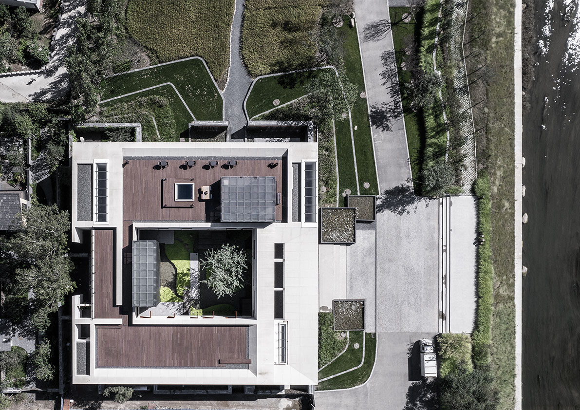 The “half” design concept divides the architecture and landscape into two parts, playing on the interaction between the building and the landscape. Each leaves room for the other, but with restraint. Looking back at the building from the middle of the field, the house floats on the rice spike. The diagonal wall is a composite strip of openings that provokes people’s curiosity, beckoning them back inside to discover more, achieving the home’s design intention—where people spontaneously venture outdoors to explore, and return back in to enjoy a well-planned multilevel sensory experience.