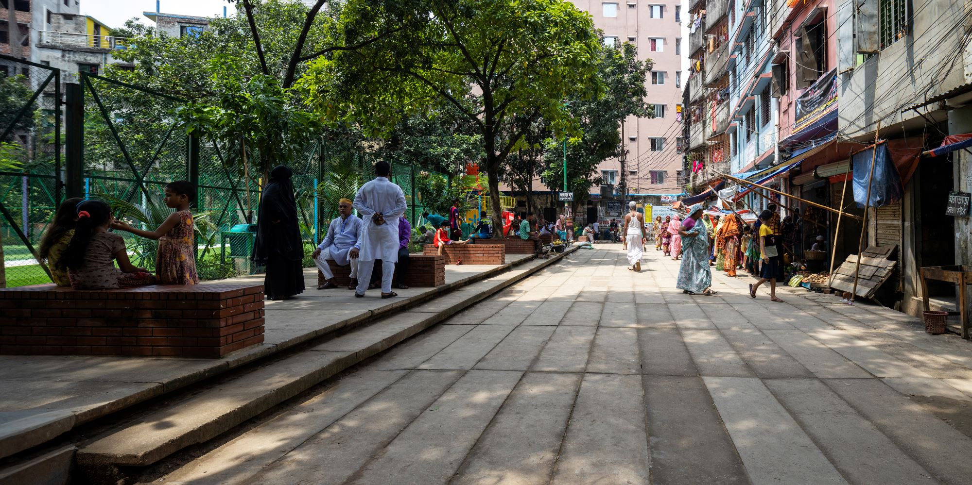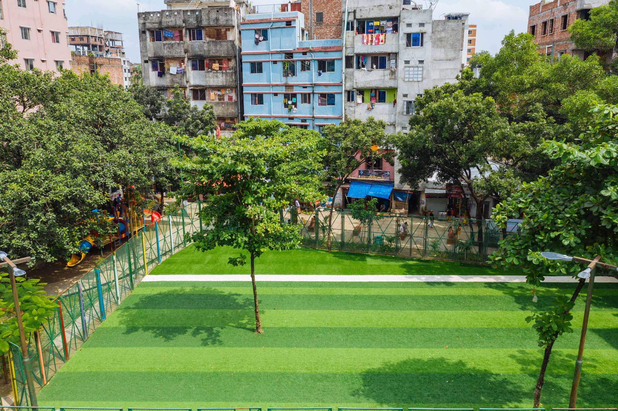 Rasulbagh Children’s Park is located in Azimpur, Old Dhaka, Bangladesh, a very dense neighborhood with almost 40,000 people living within a half kilometer radius. Over the last thirty years, due to improper maintenance, persistent flooding, illegal occupation, antisocial activities, and vagrancy, the 0.66-acre park (which translate to about 0.066 square meters per head) not only became a non-functioning site of urban mayhem, but also something of a headache and eyesore for its host community.