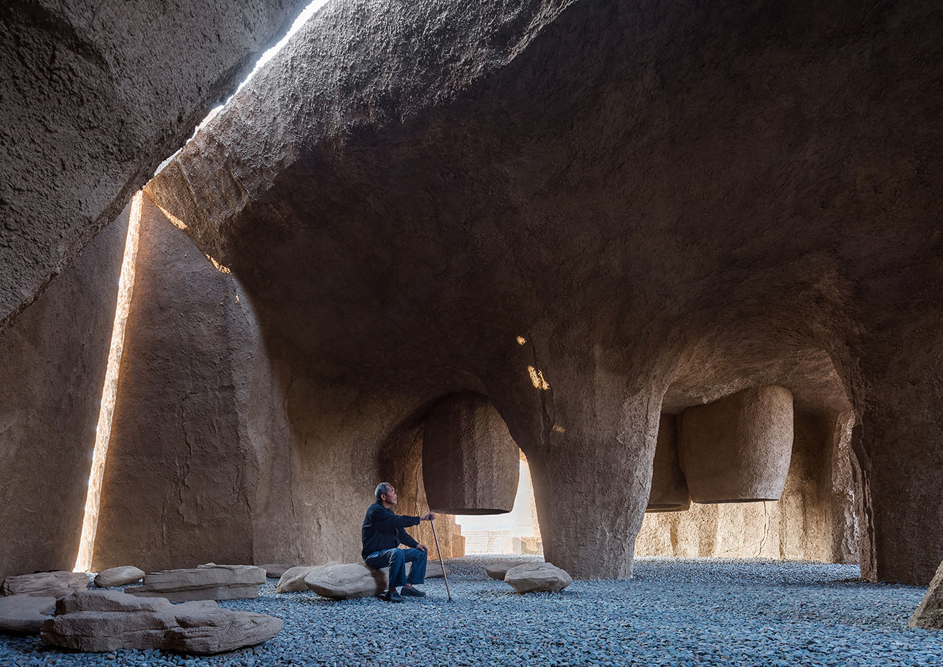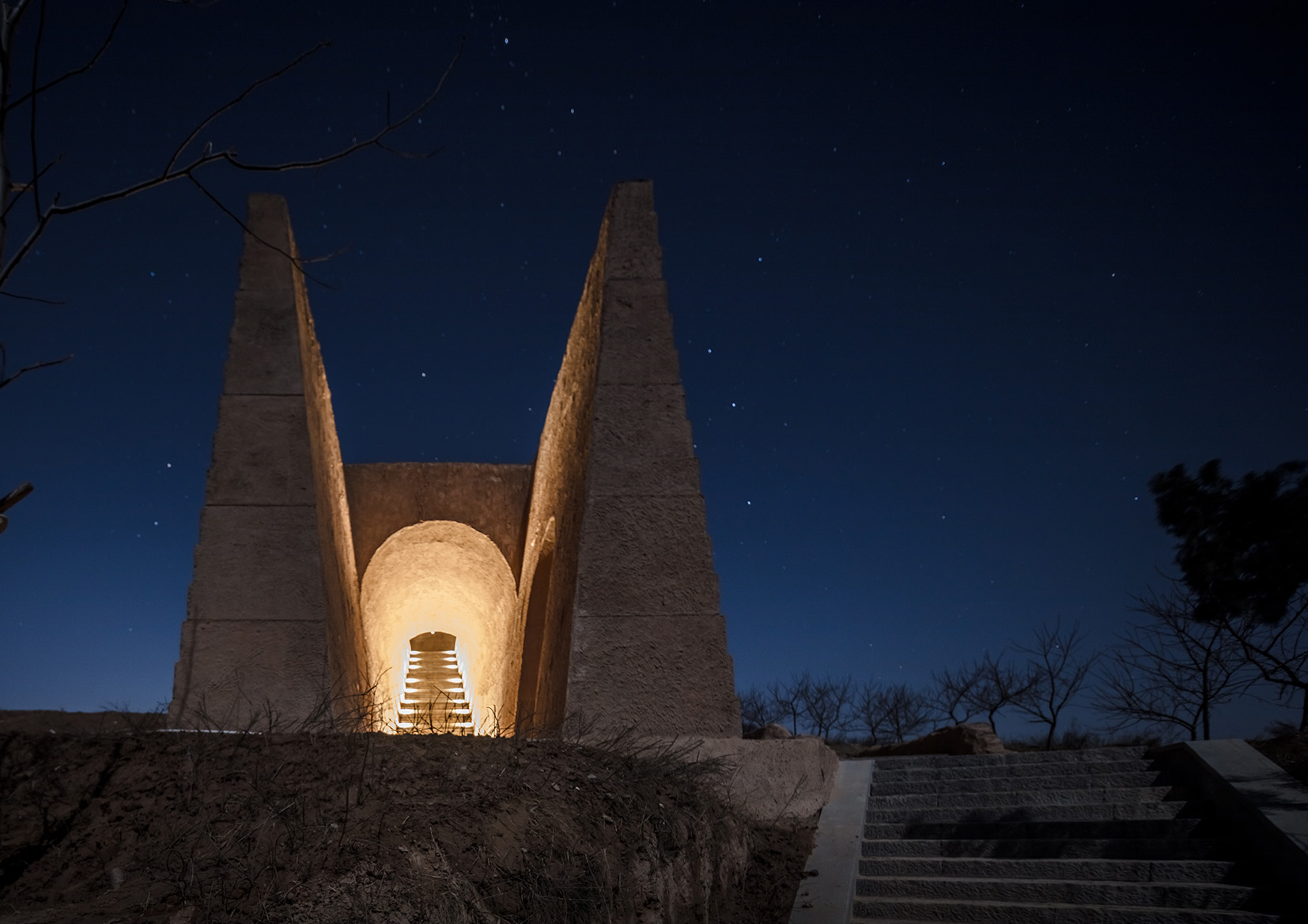 On the premise of not destroying the original construction, a primitive, mystical, and bold design language was employed to integrate the holy fire square with its natural environment, to create a new space for experiencing the historic, natural site, and to meditate in a place between the Sacred Mountains and the Yellow River.