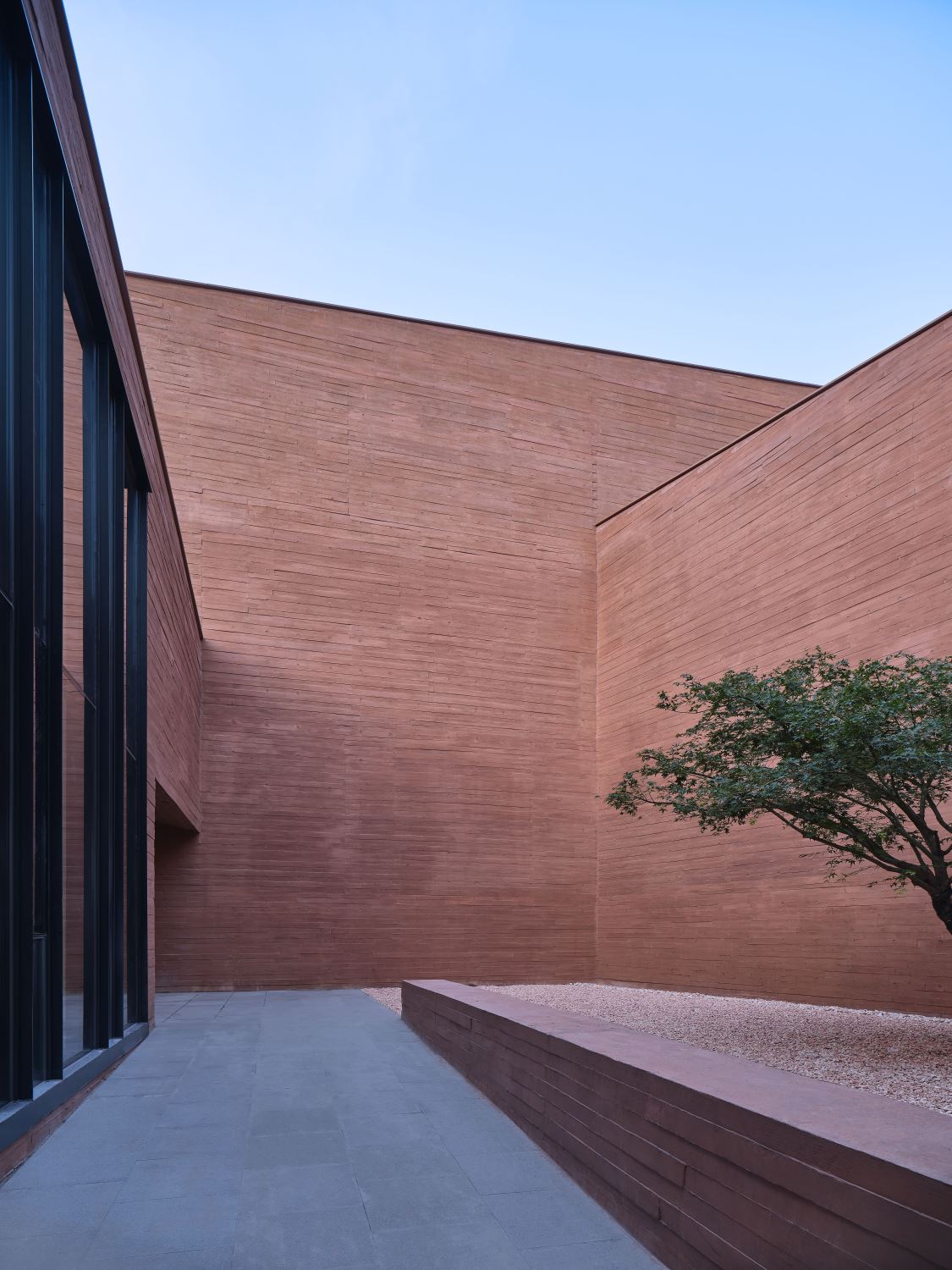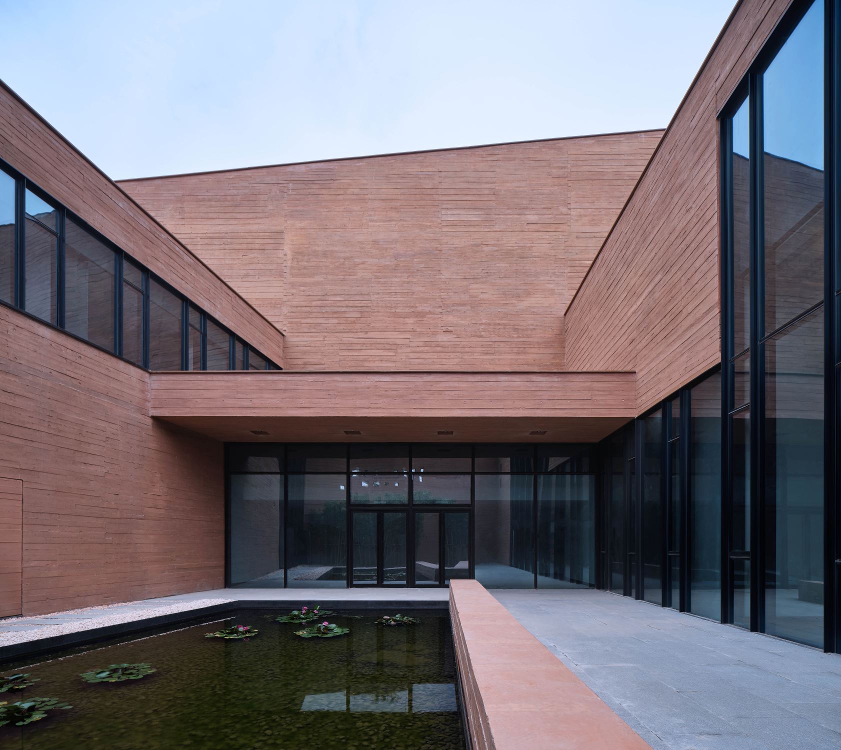 The Majiabang Culture Museum uses a mixture of pottery and pigment as the main material for its façade. The clay color of the fair-faced concrete is inspired by the pottery unearthed from the site and realized by using disordered convex and concave wooden molds to give the impression of containing an ancient civilization by reproducing its original ecological texture. Over the course of a day, sunlight creates vivid expressions on the surface of the museum.