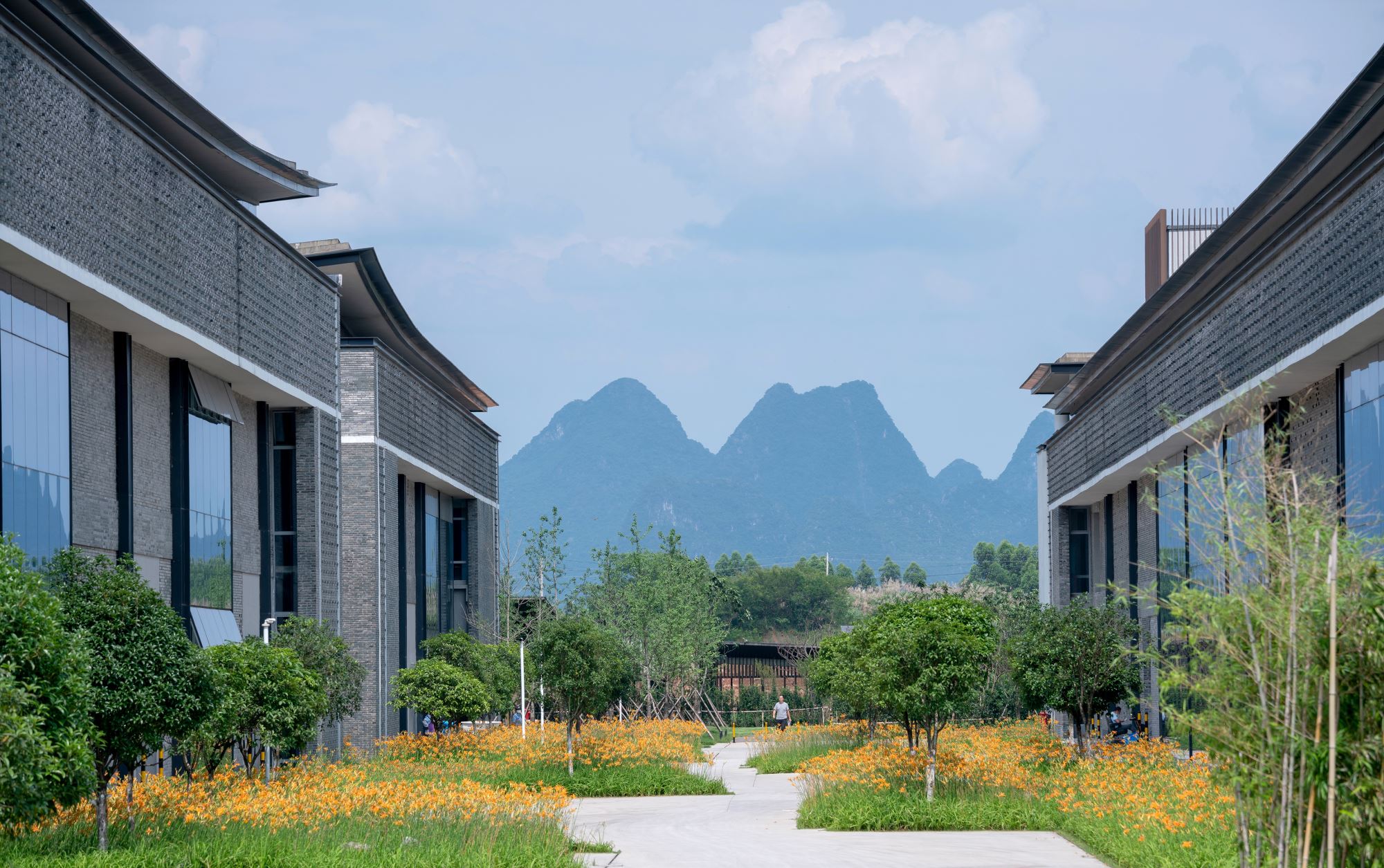 Integral is a sustainable and state-of-the-art spinning and garment manufacturing plant. Located near scenic Guilin in China’s Guangxi Province, Integral is situated in a wetland area that was once the site of a brick factory. Damaged by the brick-manufacturing activities, the original wetland was in poor shape. The architects sought to rehabilitate the land and turn a spoiled former manufacturing area into a new type of conservation-led development.