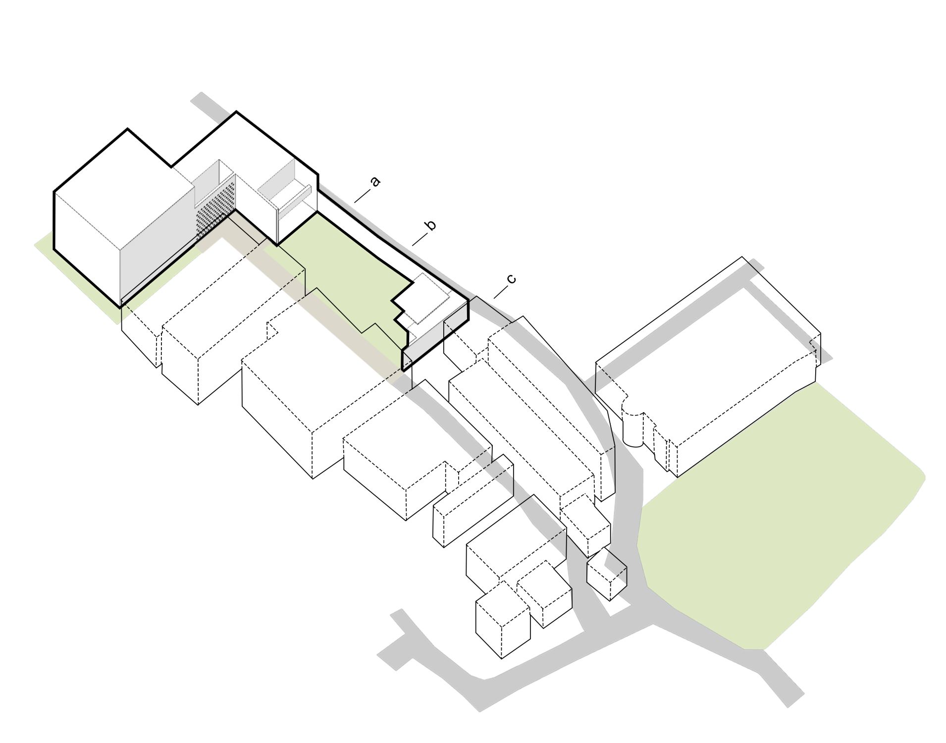 During the design development phase, a 135-sqm piece of land was added on the southeast side as a precious outdoor living area, intended not only for use by the residents of this house but also by neighboring relatives. The lawn became the centerpiece for the cluster of all five houses. Another small portion of land was bought and added later during construction, where a small pavilion was made as a counterpoint at the end of the lawn. This semi-outdoor space, meant for casual meetings of neighbors and visitors from adjacent villages, is complete with toilet and ablution space. In the final layout, the lawn thus becomes a hub for the surrounding built forms.