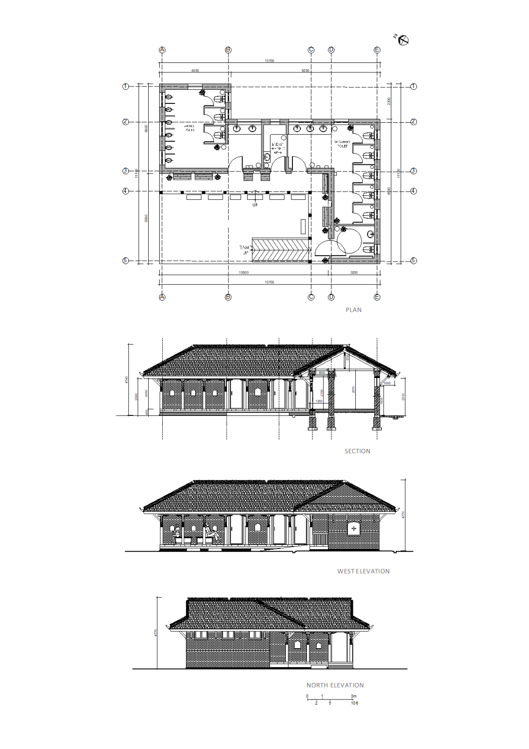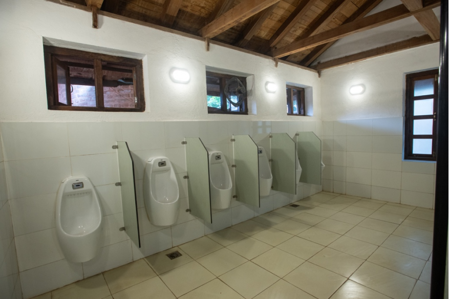 The Plan of the toilet is designed in an L-shaped form to make a front space to get a public frontage and define its enclosure. The southwest section features a disabled-friendly toilet with ramp access. A covered, L-shaped colonnaded walkway connects to the restroom facilities, which include a ladies' toilet with five units, a dedicated breastfeeding cabin, and a gents' toilet with three units and urinals. The platform serves both as a connecting corridor and as a resting area, as is typical in the Phalcā. This small 100 sq m toilet project reflects the traditional Newar architecture, housing a new facility.