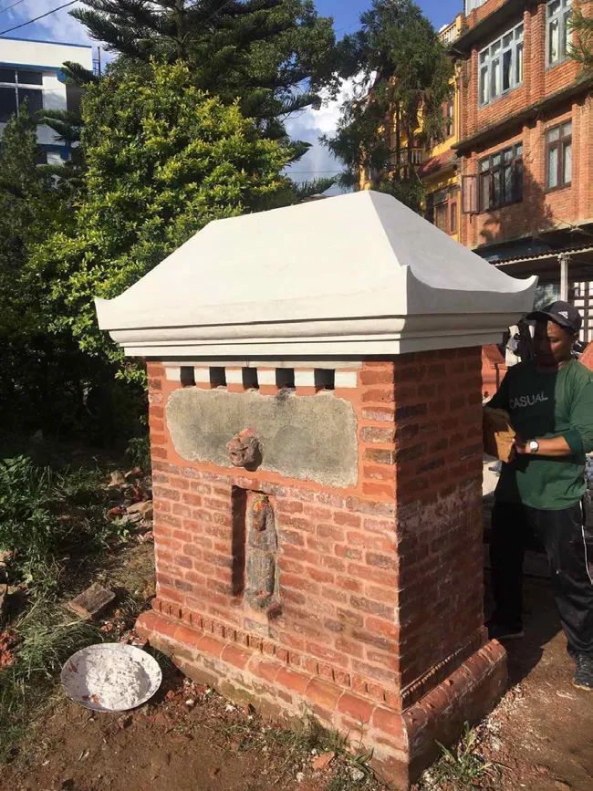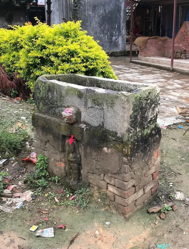 Jaḥrũhiti in Newari (from Sanskrit Jaladroṇī) - The spigot fountains built for a meritorious act availing drinking water to any passerby using small covered reservoirs. before and after reconstruction, Cibāhāḥ, Sunāguthi.