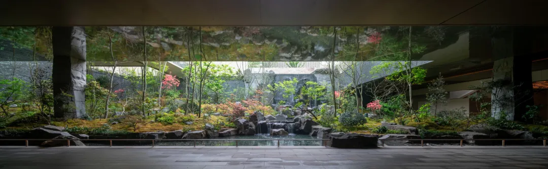 For travelers, the streams and mountains were borderless fields. The hotel’s landscape is also not confined to the rectangular boundaries of the central courtyard. It permeates into the surrounding gray space and extends even beyond.