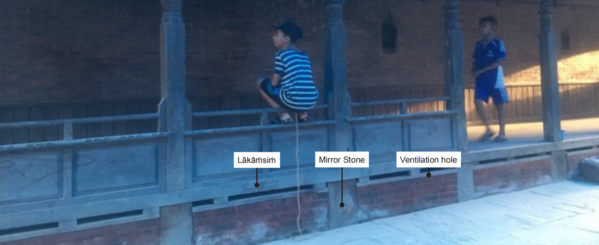 Two parallel lākāmsiṁ were placed on the floor as if to install two lines of posts. However, only one line of the posts on one lākāmsiṁwas installed (see Fig. 17), which was surprising. If the plan was to put a single line of column it should have been placed at the center. If the load is placed on the single edge, there is a risk of the edge of the ground getting damaged in the long run.
