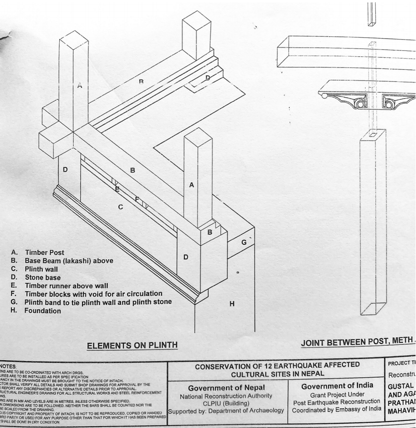 After a long process, the support was assured, and a Memorandum of Understanding (MoU) was signed between Nepāl and India for the reconstruction of damaged cultural heritage sites in Nepāl. Central Level Project Implementation Unit (hereafter CLPIU) under NRA was assigned as the implementing agency, and the consulting and supervision service was provided by the Indian National Trust for Art and Cultural Heritage (hereafter INTACH). They hired local experts to guide their undertakings here in Nepal.