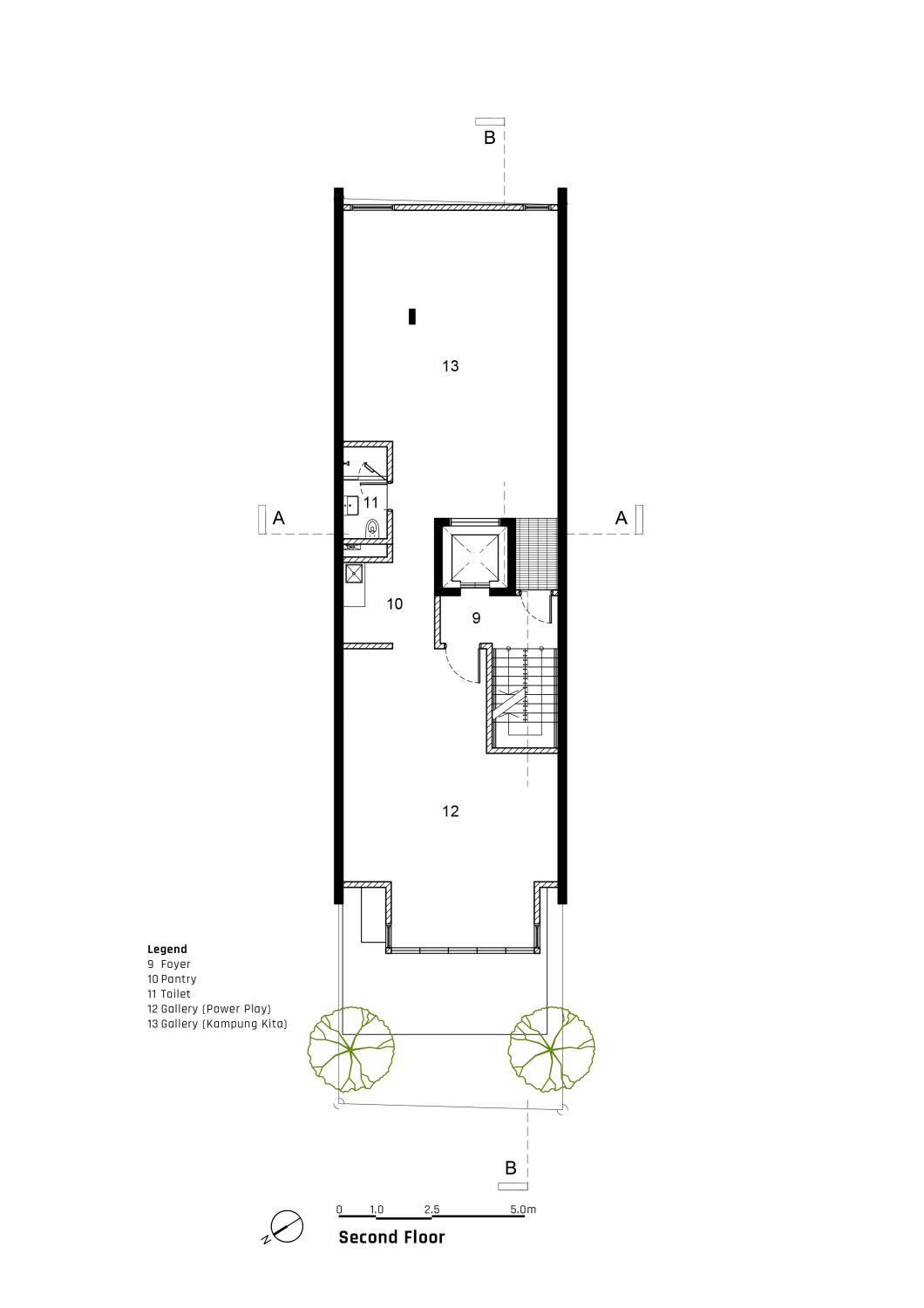 The interior of the space is designed with the sculptures and artworks displayed along the wall of a sky-lit ceiling in accordance with Brâncuși's concept of spatial arrangements, creating "mobile groups" regularly rearranging the sculptures on display to demonstrate spatial relationships and to emphasise the interconnectivity of the pieces. Stepping outside onto the rooftop terrace, visitors will be in awe of the commissioned outdoor sculpture by Abdul Multhalib Musa titled Wing It! The large-scale sculpture complements the city skyline with a spectacular view of the Kuala Lumpur Tower and the bohemian neighbourhood below.