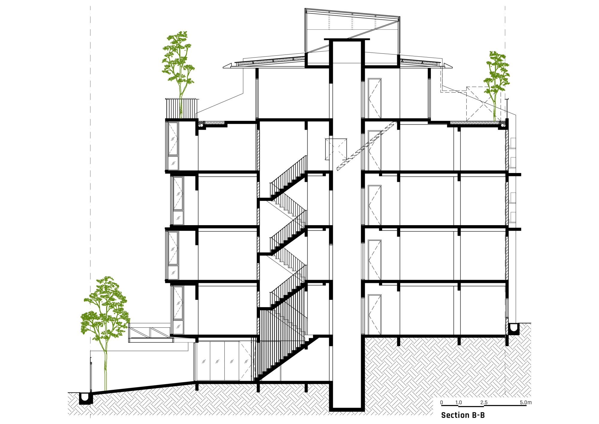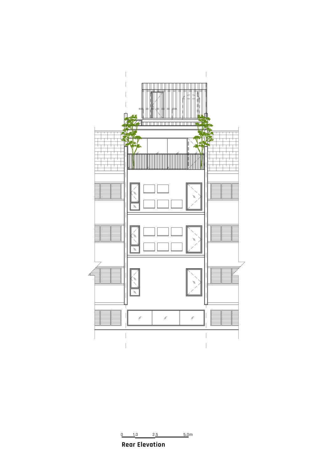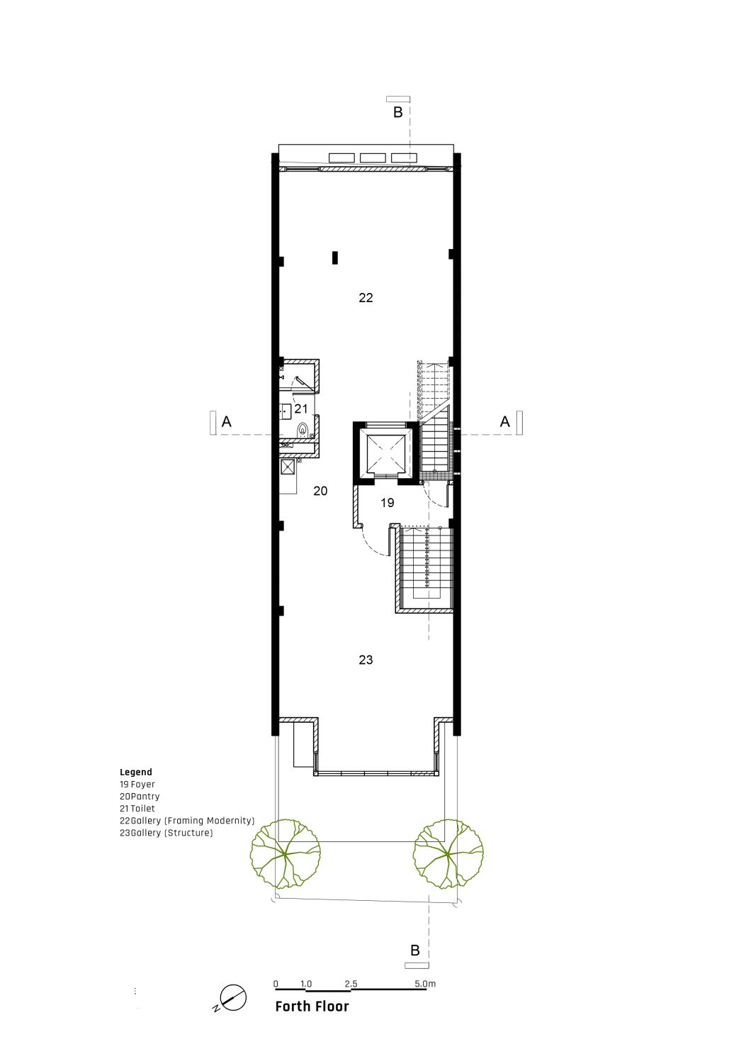 Ur-Mu is housed in a 1950s modernist four-storey walk-up apartment building comprising eight two-bedroom fats; the original layout remains intact, with additions including a lobby, roof-top garden, lift, washroom for the disabled, and new façade.