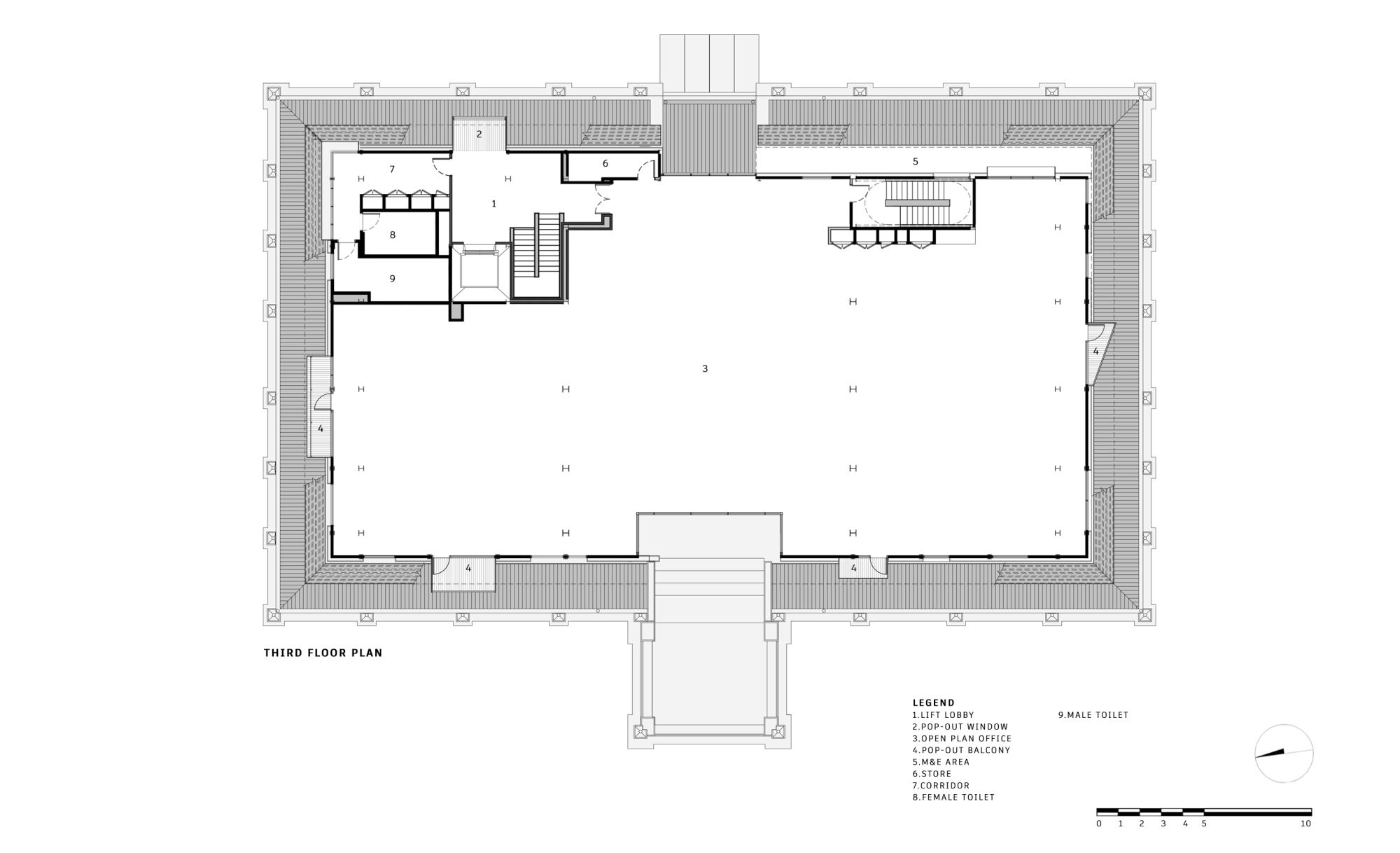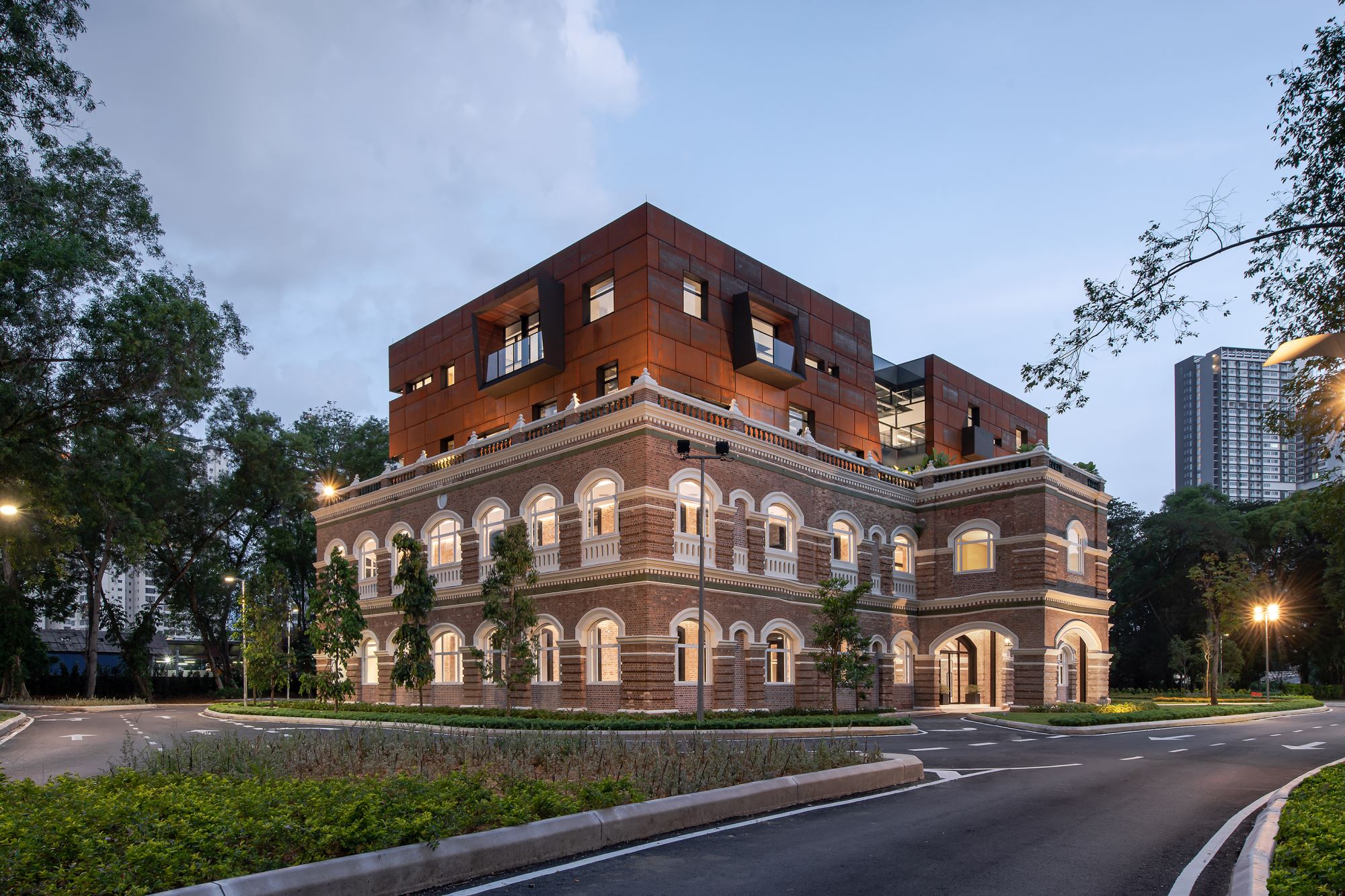 A number of balconies and bay windows are strategically added to some of the openings between the grid projecting towards the historical railway workshops to the north, the lush park setting to the west, the YTL land sales gallery to the south-west and the iconic soaring towers of The Fennel by YTL Land towards the east. The balconies and pop-out windows create surprises and contribute to the overall abstraction of the upper mass in contrast to the formal language of the colonial architecture below.