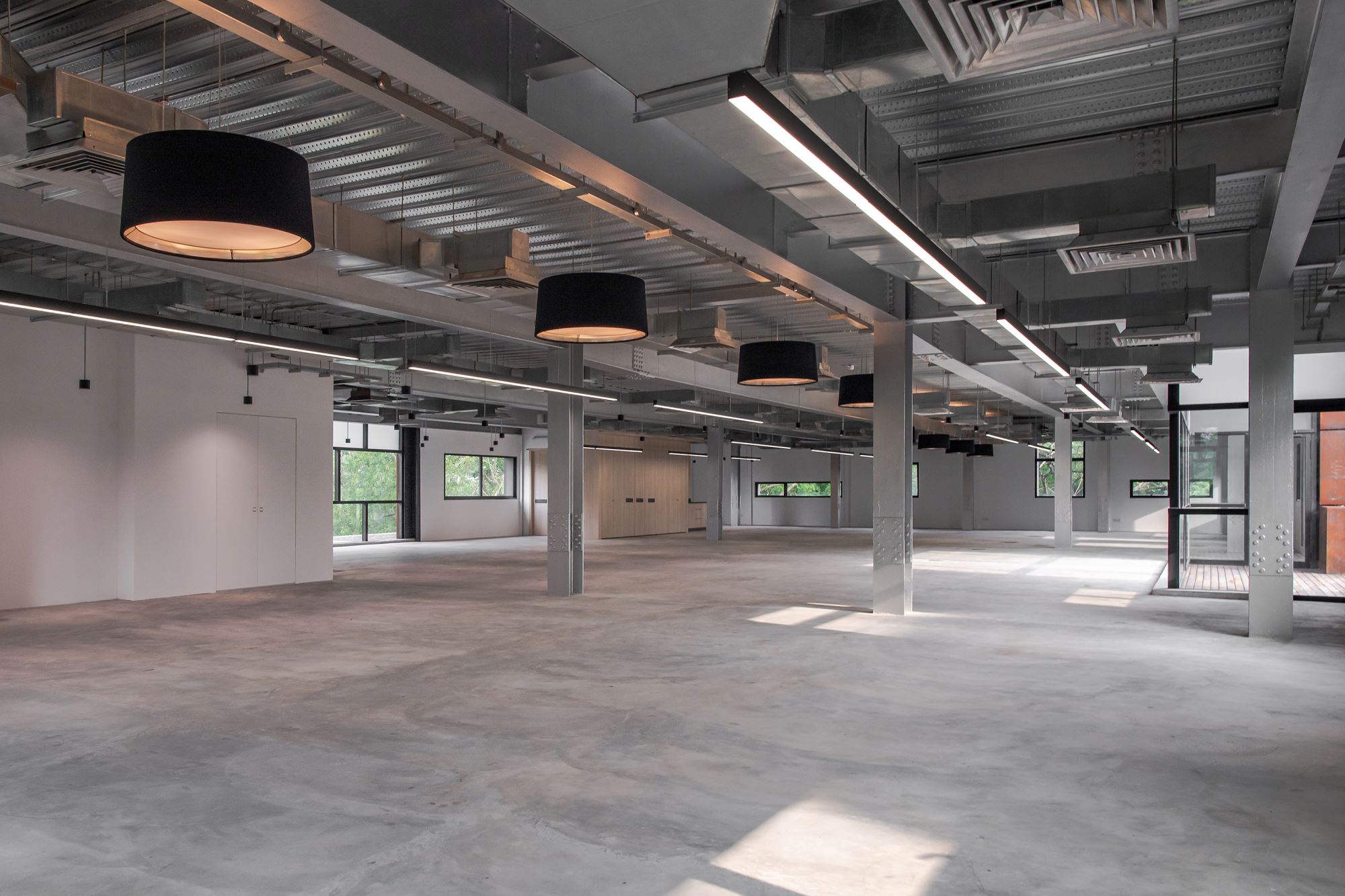 The original layout of the Sentul Works consists of 2 main spaces separated by a central double volume hallway. Adapting to the original symmetry of the building interior, the new free plan office spaces flanked around the original hallway now serving as a double volume central atrium. A bridge on the first floor links both office floor plates at both sides. Visual connection is established between tenants on the ground and first floor within the working environment without compromise on privacy. The interior of the office is planned as a flexible free plan, giving tenants maximum adaptability according to their working needs.