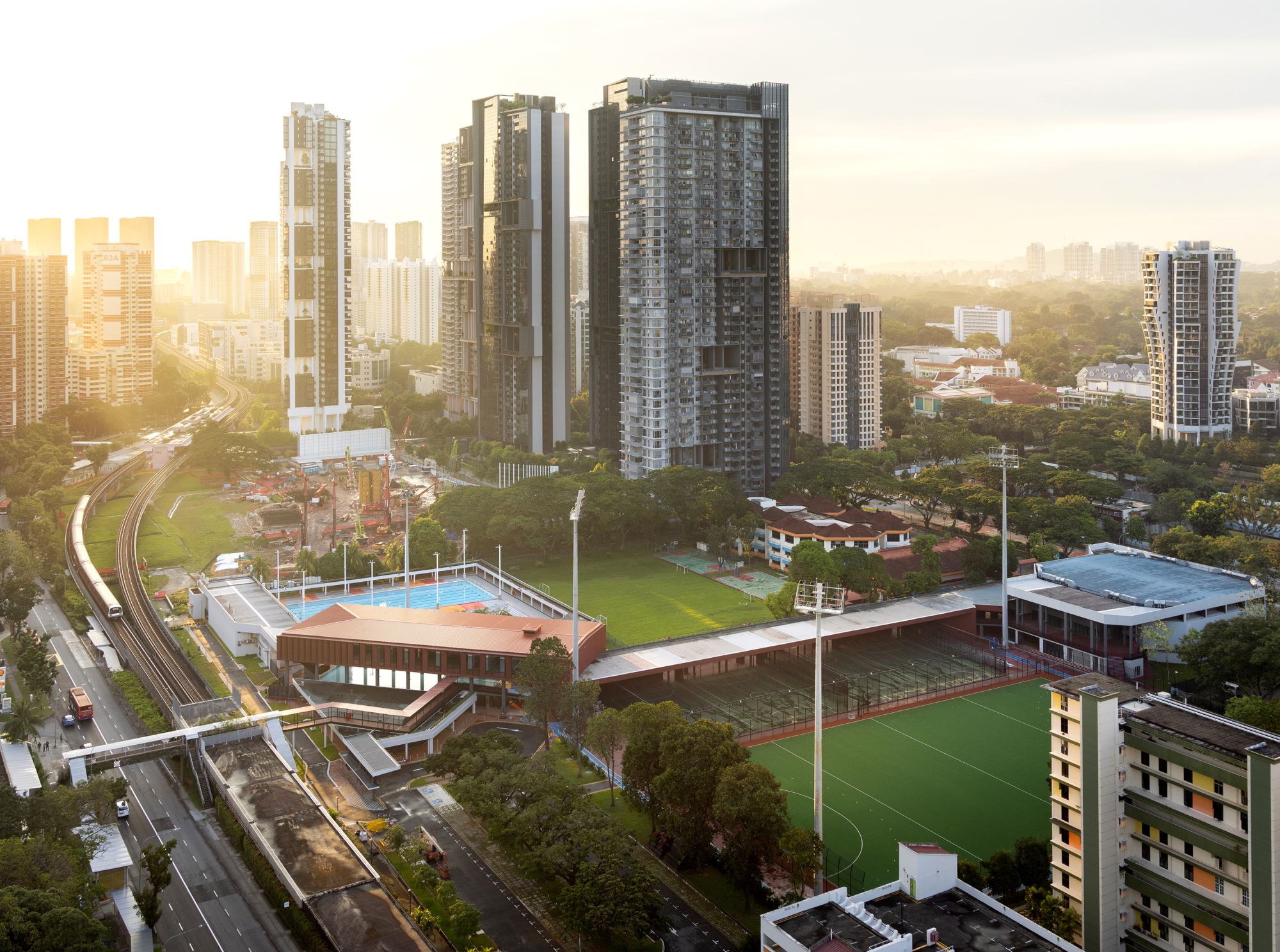 Occupying a 3.25-hectare site are three key components - the indoor sports hall fronting Alexandra Road, the swimming complex alongside Tiong Bahru Road, and the hockey stadium in between.