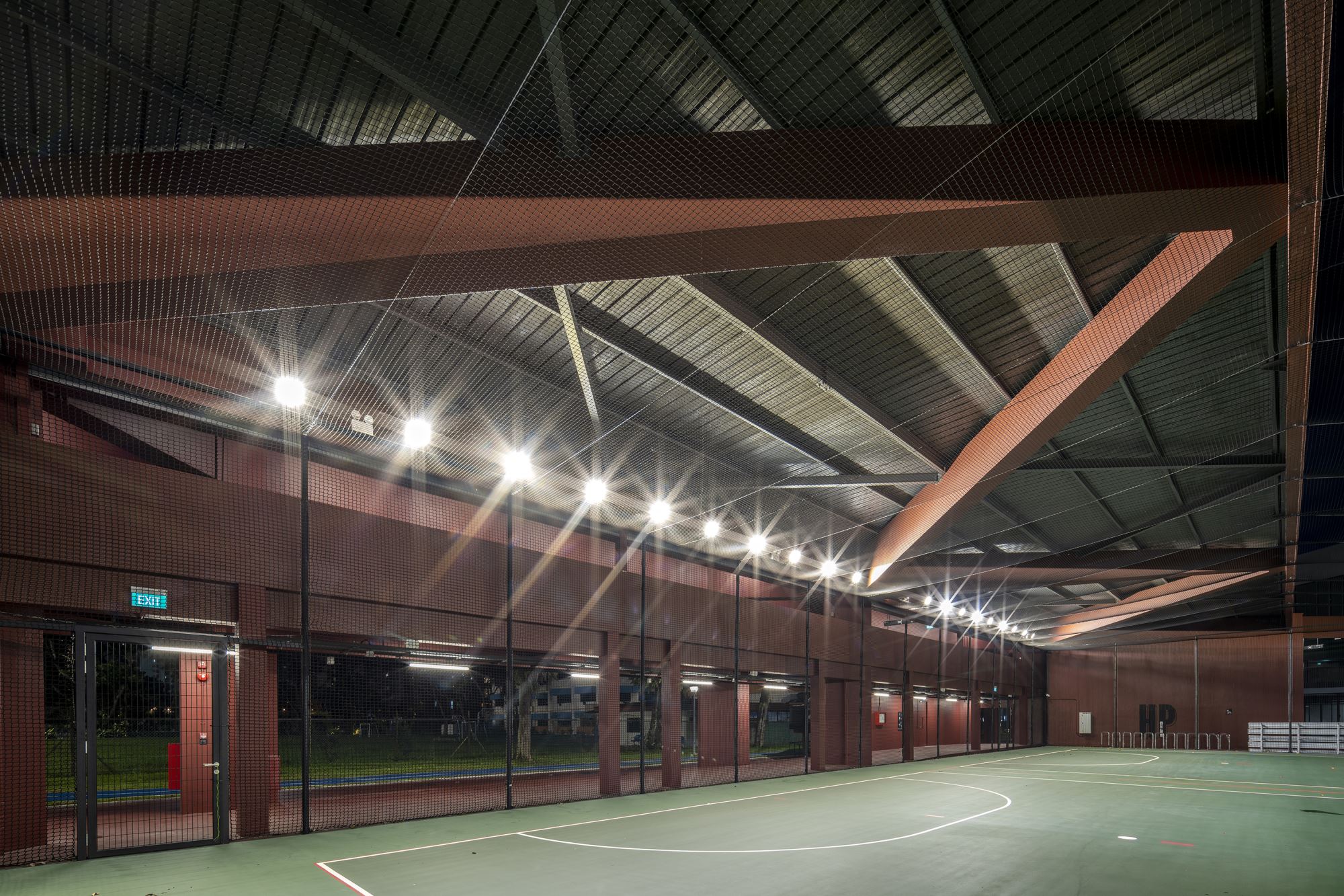 The facilities are backed by the national agency Sport Singapore that promotes sporting activity for the population. This involves integration with their online management system that allows users to choose, pre-book, and pay for the venues. The facilities are managed by the same agency that attends to public feedback and upkeeps the property to function optimally. These soft structures complement the physical premises, which provide a great variety of activity spaces. Lastly, the courts can be customised to different uses, such as badminton/basketball indoor halls and hockey/futsal/pickleball outdoor courts. These spaces can furthermore adapt to new sports which may become popular in the future. Non-physical aspects of healthy living are integrated with the Active Health Lab in the complex, which gives basic health monitoring and advice to the public, such as regarding heart rate and blood pressure.