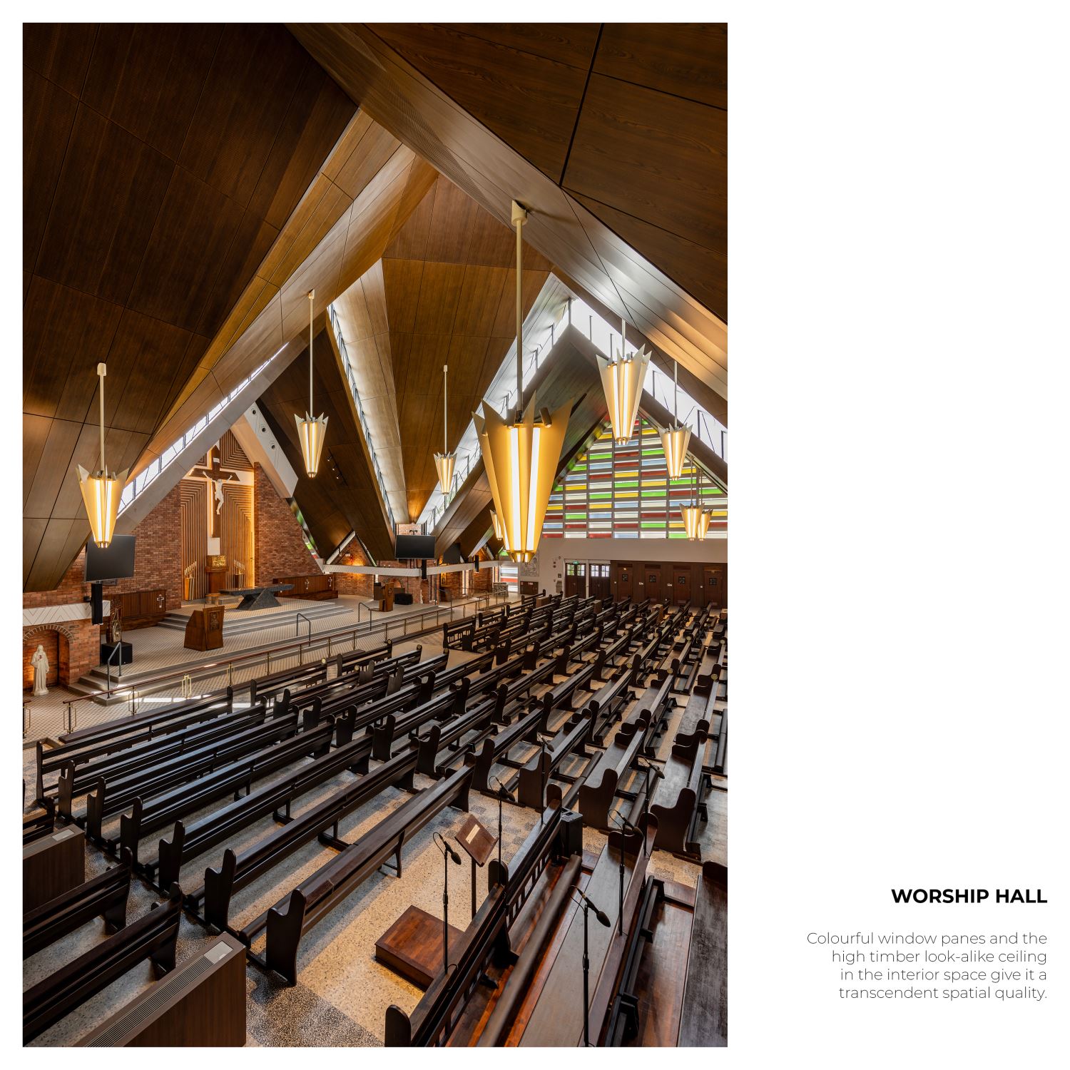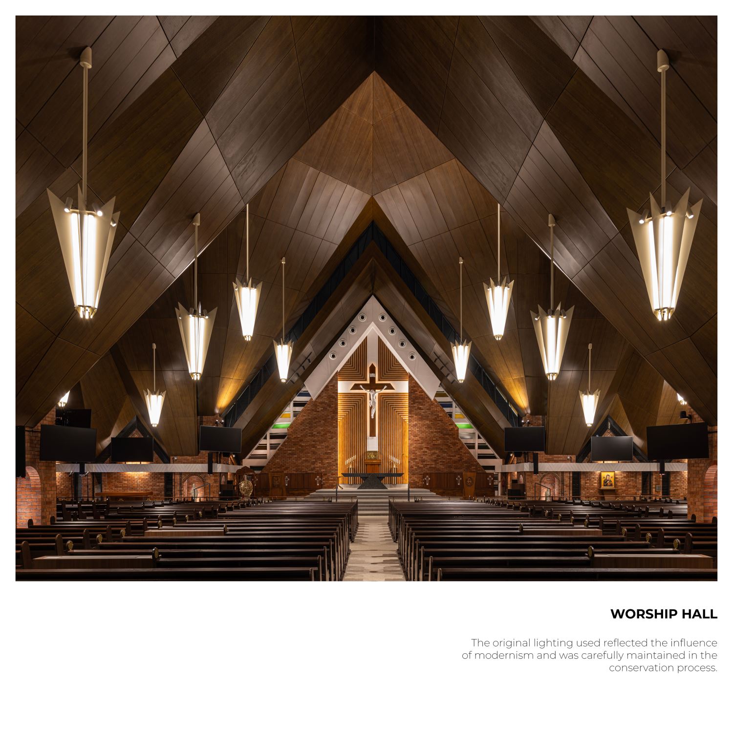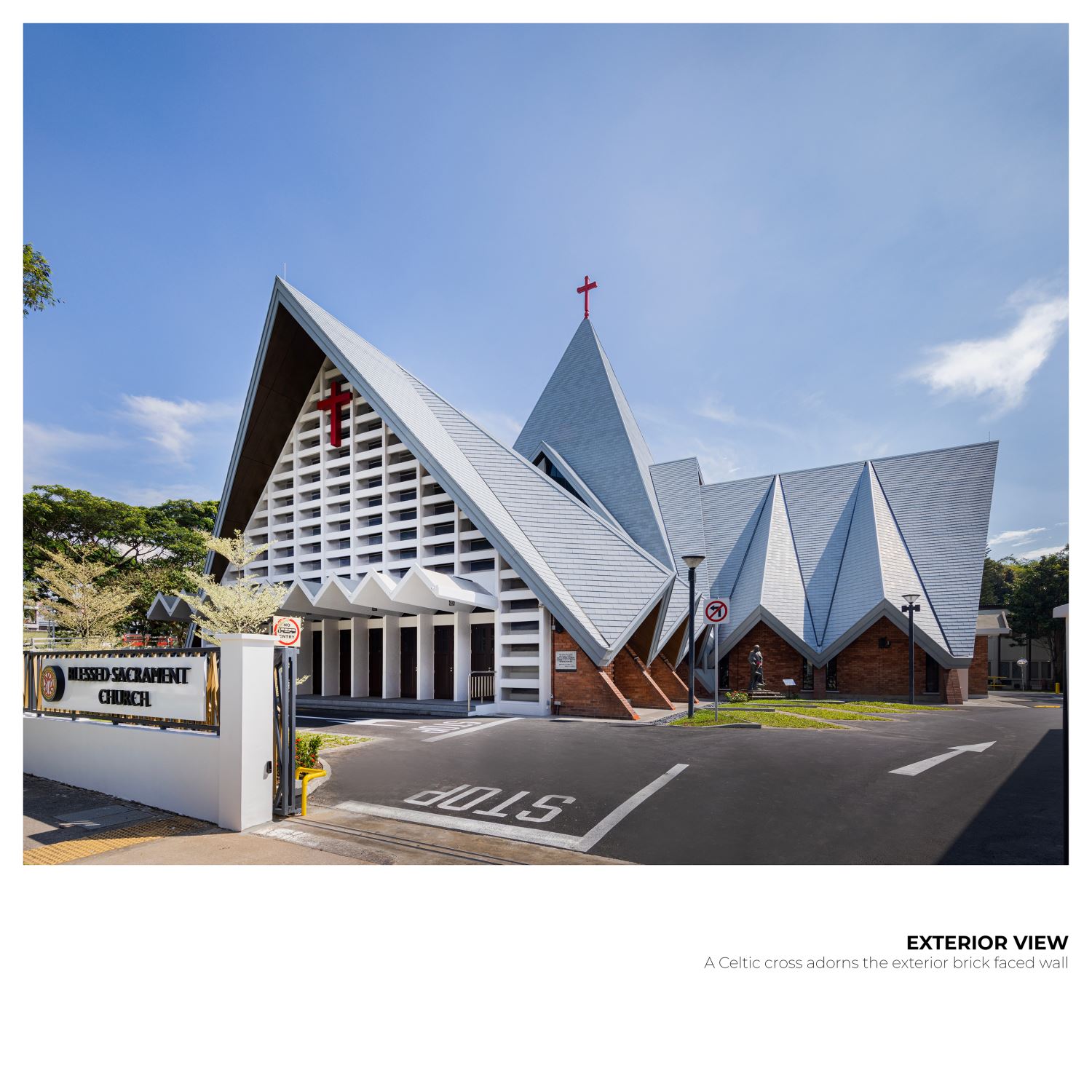 Blessed Sacrament Church (BSC) opened in 1965 by Archbishop Michael Olcomendy, Iversen & Van Sitteren Partners as the Architects. In 2005, URA gave it Conservation Status, its folded Roof Structure, a unique feature over its interiors, creates a transcendent spatial quality. Restoration of the church and interiors took place between 2021 and 2023.