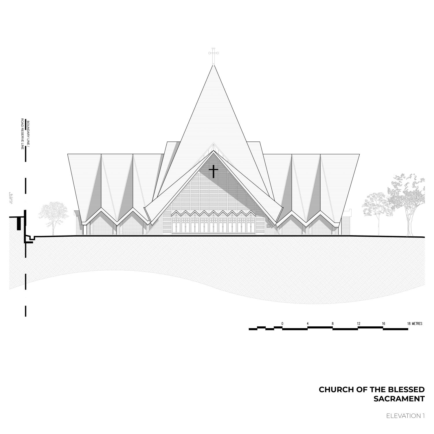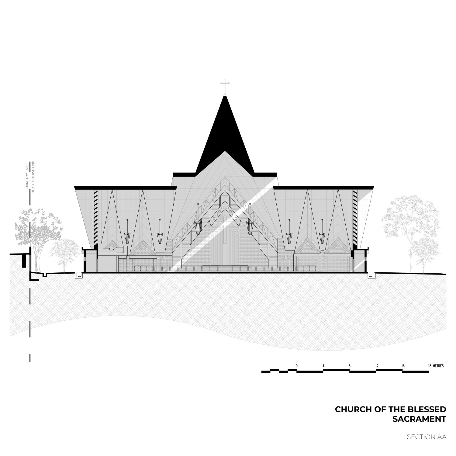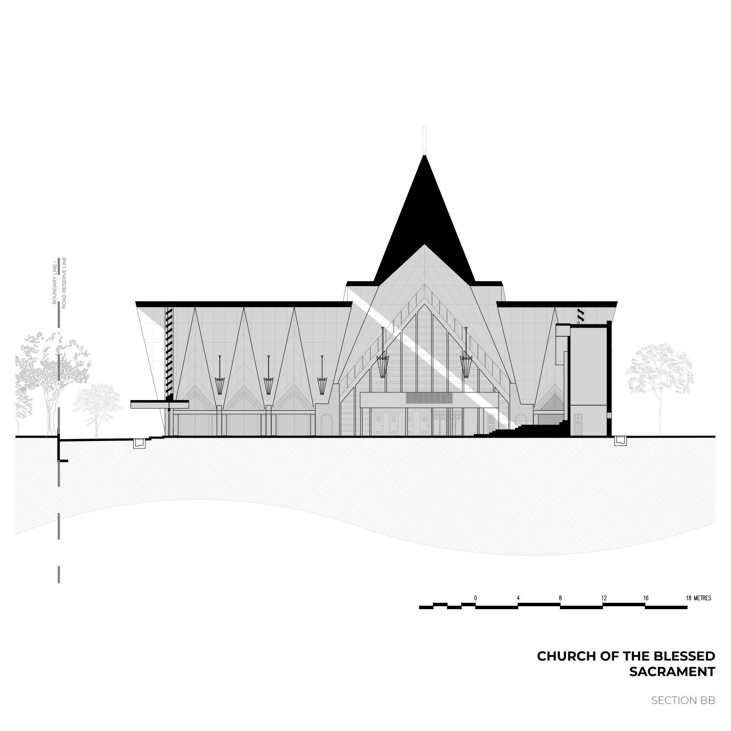 Blessed Sacrament Church (BSC) opened in 1965 by Archbishop Michael Olcomendy, Iversen & Van Sitteren Partners as the Architects. In 2005, URA gave it Conservation Status, its folded Roof Structure, a unique feature over its interiors, creates a transcendent spatial quality. Restoration of the church and interiors took place between 2021 and 2023.