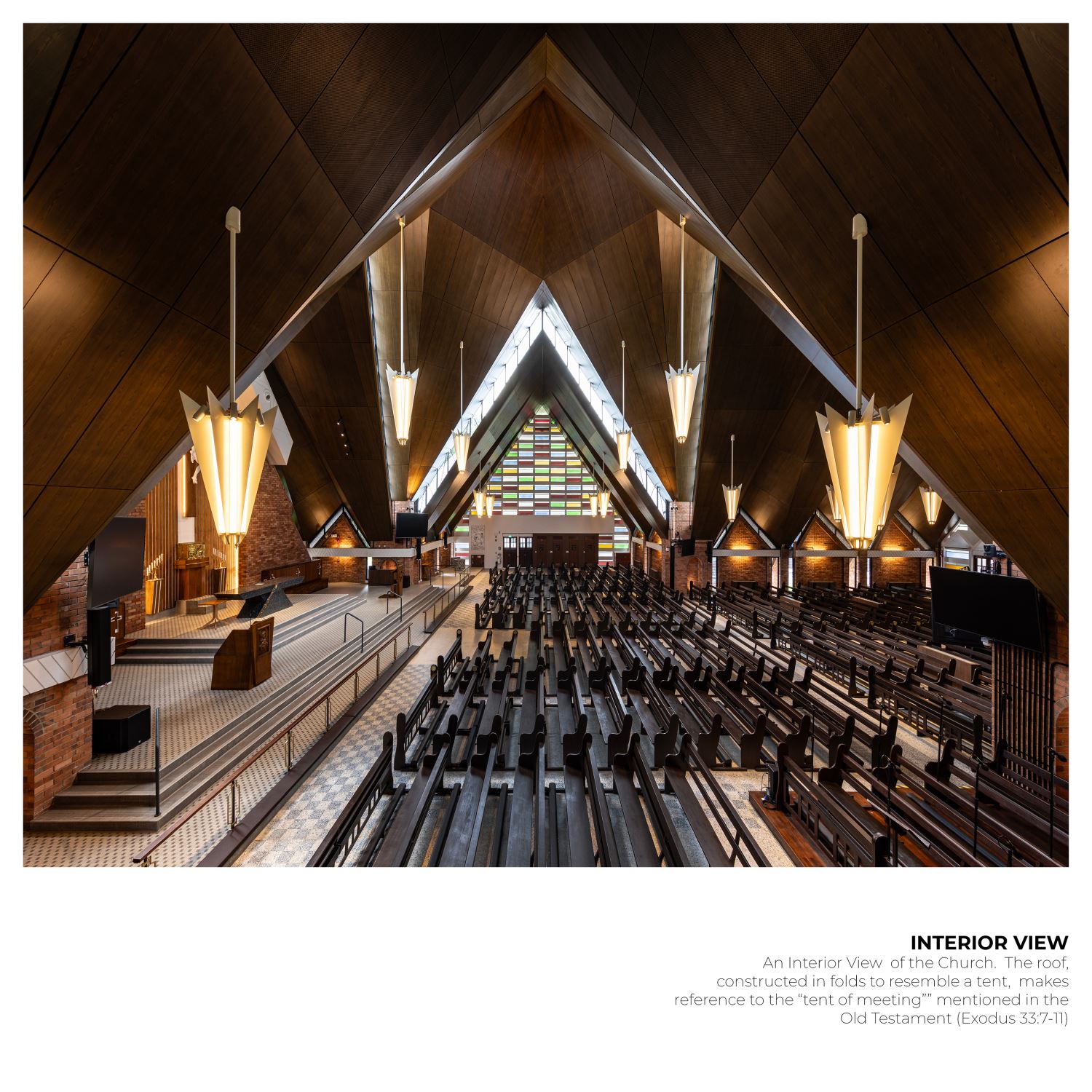 Designed by G.Dowsett, its signifcant feature was a folded roof constructed to resemble the Tabernacle in Exodus 33:7-11. The Church was granted Conservation Status in 2005.
